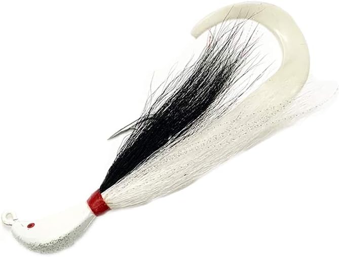 Here are 10 pieces of brand new 1oz Bucktail Jigs painted double eye for a light-reflecting, realistic look. Banana-style head adds weight and action. Premium nickel round-bend hook to securely hold large fish. Bucktail and soft bait are hand-tied for reliability to catch fish after fish, day after day.