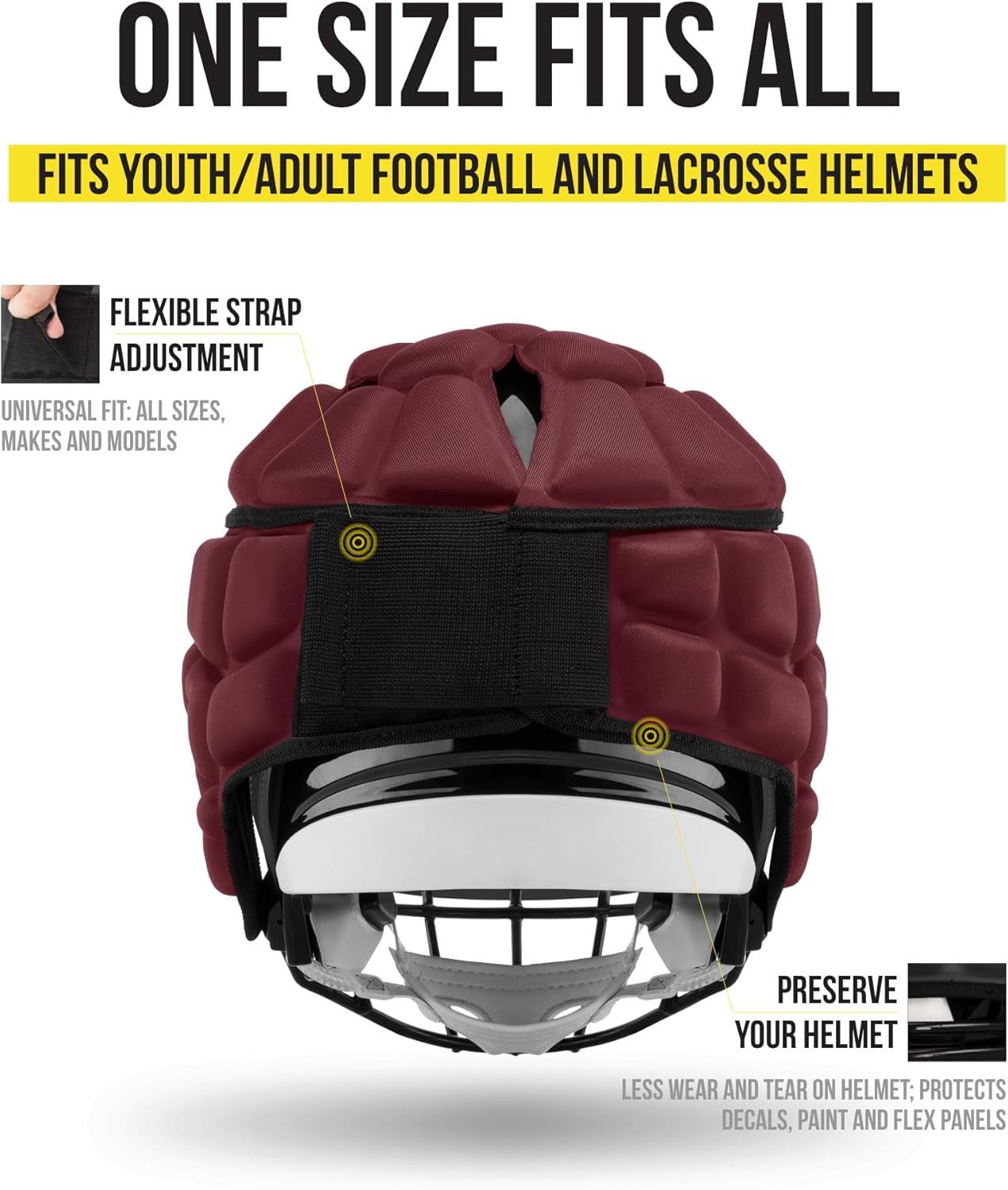 Guardian Cap - Soft-Shell Helmet Cover for Football and Lacrosse - Reduces Impact and Protects Helmets - One Size Fits All