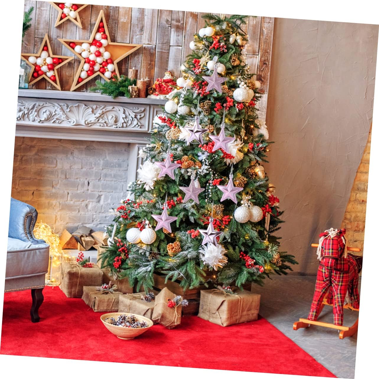 Package Include 18 x plastic stars Features - Material: Plastic Christmas Tree Decor. - Color: Golden Christmas Tree Star Decor. - Thrill the entire family and provide fun and entertainment Hanging Star. - Fine craftsmanship, this ornaments is great for Christmas decoration Hanging Christmas Decor. - A good to give our friends, relatives, colleague, families and so on during Christmas Plastic Star Decor. - It can create Christmas atmosphere This decoration will bring joy to you and your guests Your festival party will be remarkable with such a creative accessory Christmas Tree Hanging Star. - Christmas five-pointed star is easy to hang Plastic Star Ornament.Goods InformationChristmas Decor Classic Christmas design, very warm and festive, fit for Christmas themed party, three-dimensional design make it more unique and chic.Christmas Tree Star Decor This item is a great Christmas element ornaments for you.Hanging Star It also can adorn your wall, window, decorative cabinet, table and so on