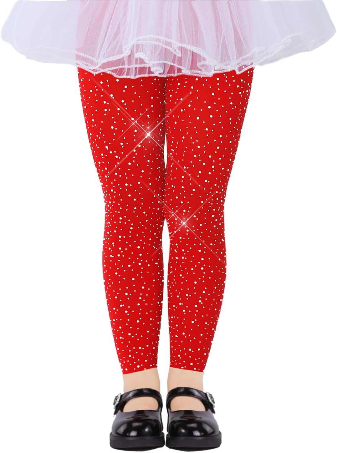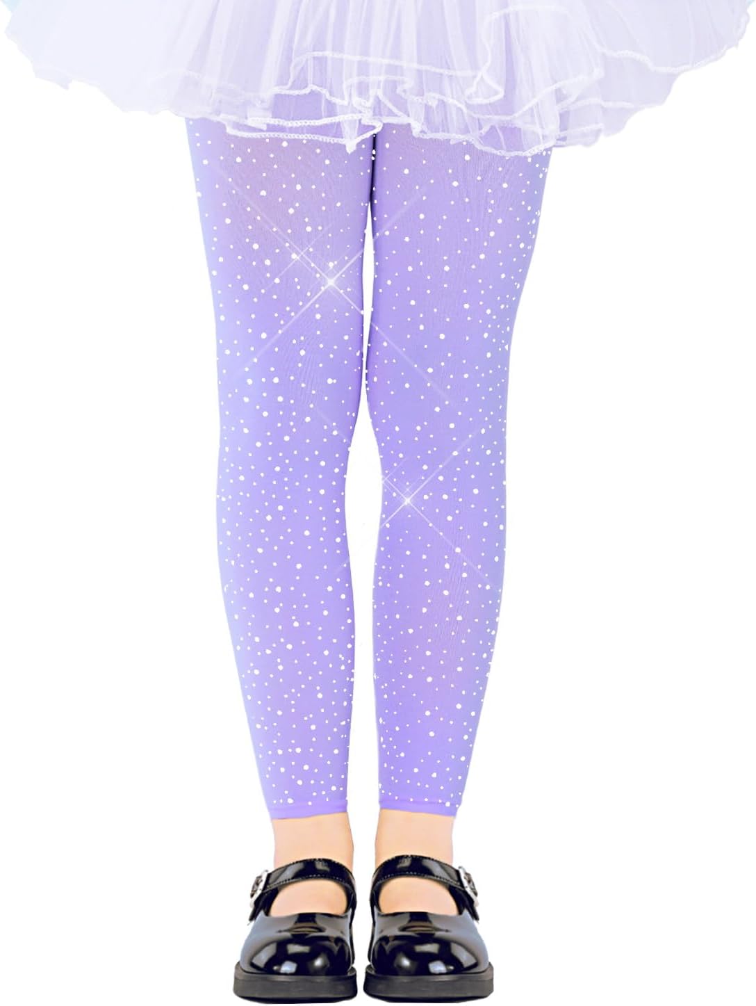 LUCKELF Girls Footless Tights with Sparkle Rhinestone Ballet Dance Tights for School Students Soft Stockings