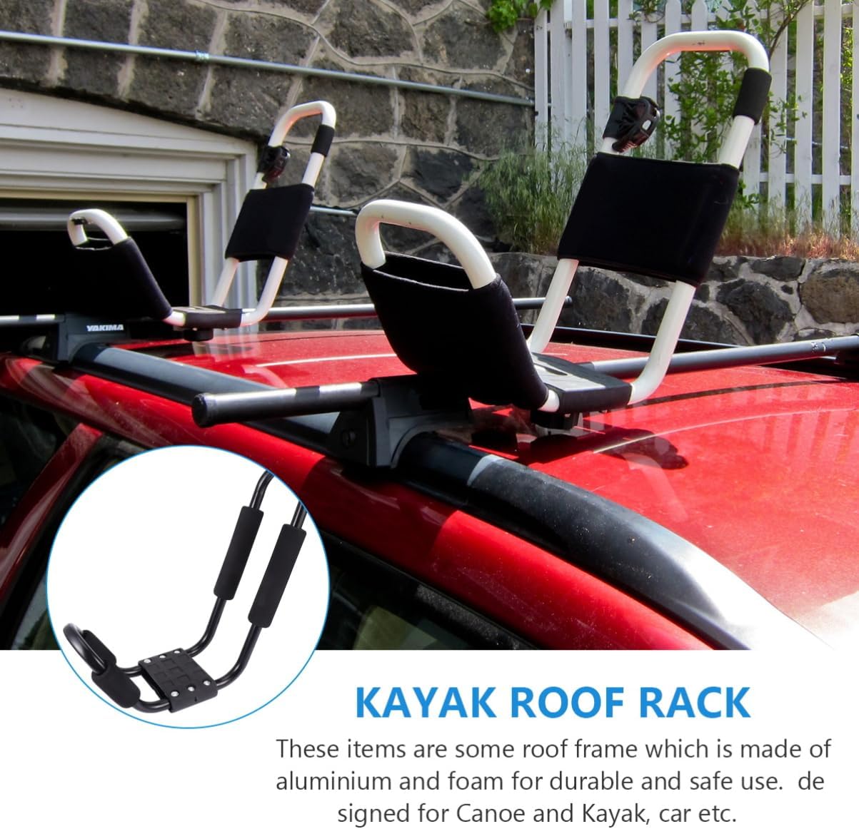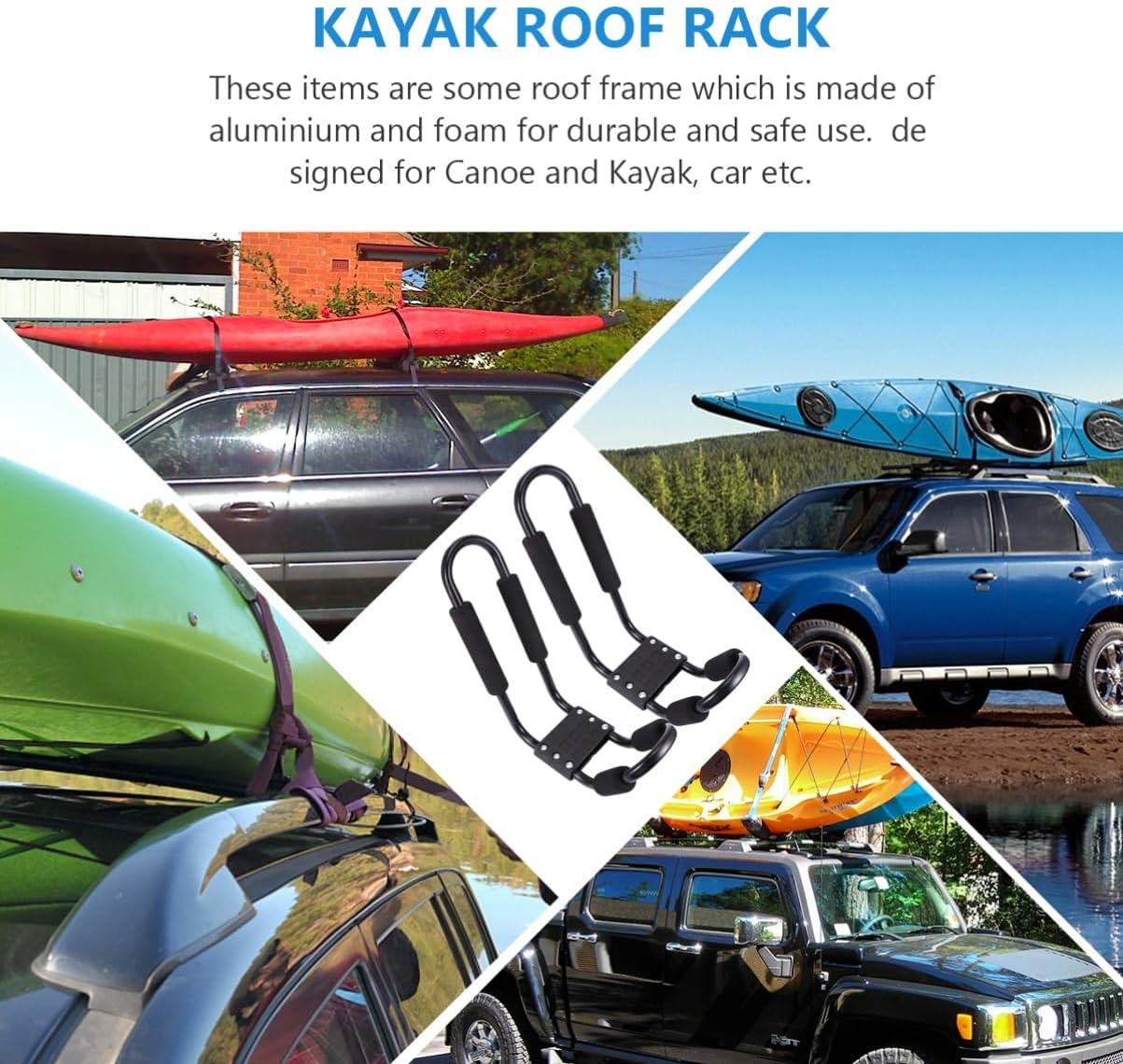 Package List 2 x storage racks Characteristics - Size: About 49x17x10cm/19.29x6.69x3.94inch Canoe Roof Frame - Color: Black Luggage Roof Rack - Material: aluminium and foam Car Rack - Aluminium and materials are and Luggage Shelf - They have the fixing effect Car Luggage Rack. - Easy to install Car Roof Frame - roof frames for you - Waterproof and rust-proofGoods InformationLuggage Shelf they have the workmanship details, you will use them for a long time.Car Roof Frame designed for Canoe and Kayak, car etc.Car Luggage Rack These items are some roof frame which is made of aluminium and for and use.Car Rack they are easy to clean and use