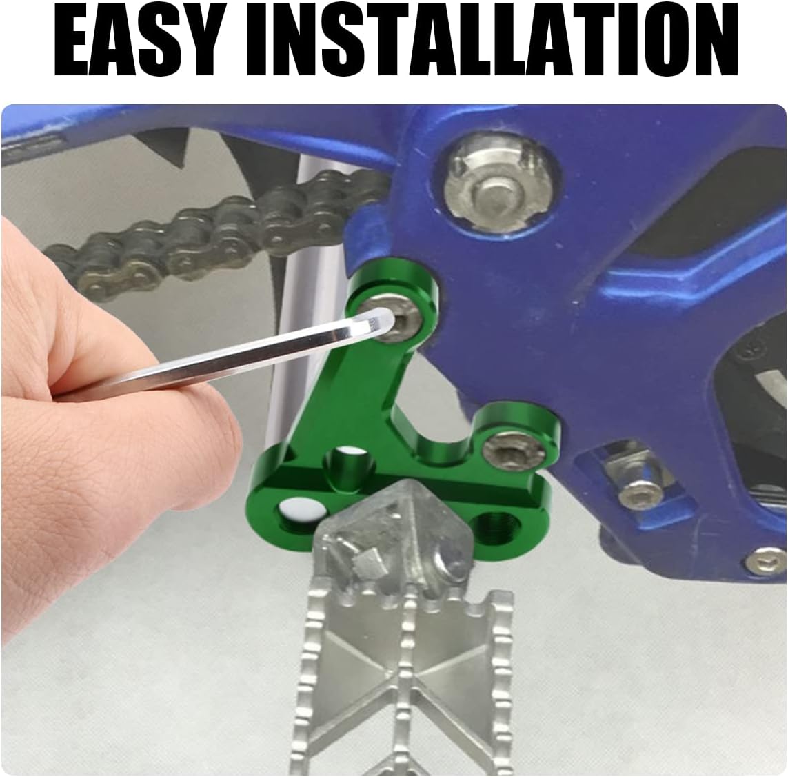 Pedal Rest Bracket And Reinforced Lever for Sur-ron Light Bee/Segway Features Direct Bolt-On » Strongest Design » Black Anodized Finish » Eliminate Foot Peg Failures » Uses Factory Mounting Hardware » Replaces Weak OEM Cast Brackets » Billet Aluminum Foot Peg Mount Support Brace » CNC Machined from 7075 Aircraft Billet Aluminum » Won't Fail Like Factory Sur-Ron Cast Foot Peg Brackets » Three M14x1.25 Threaded Holes on the bottom of each peg bracket » URLWALL Foot Peg Mounting Bracket and Support Brace Eliminate Frame and Peg Failures » Installation might require the kick stand hole to be reamed due to factory bolt size variations Description: URLWALL's replacement Billet Foot Peg Mounting Brackets for Sur-Ron Light Bee/Segway These billet brackets replace the weak oem cast brackets that are known to fail. Includes 2 * Sur Ron Foot Peg Bracket and 1 * Foot Support Rod to protect against all jumping, hard riding and against general fatigue that the cast foot peg brackets suffer from.