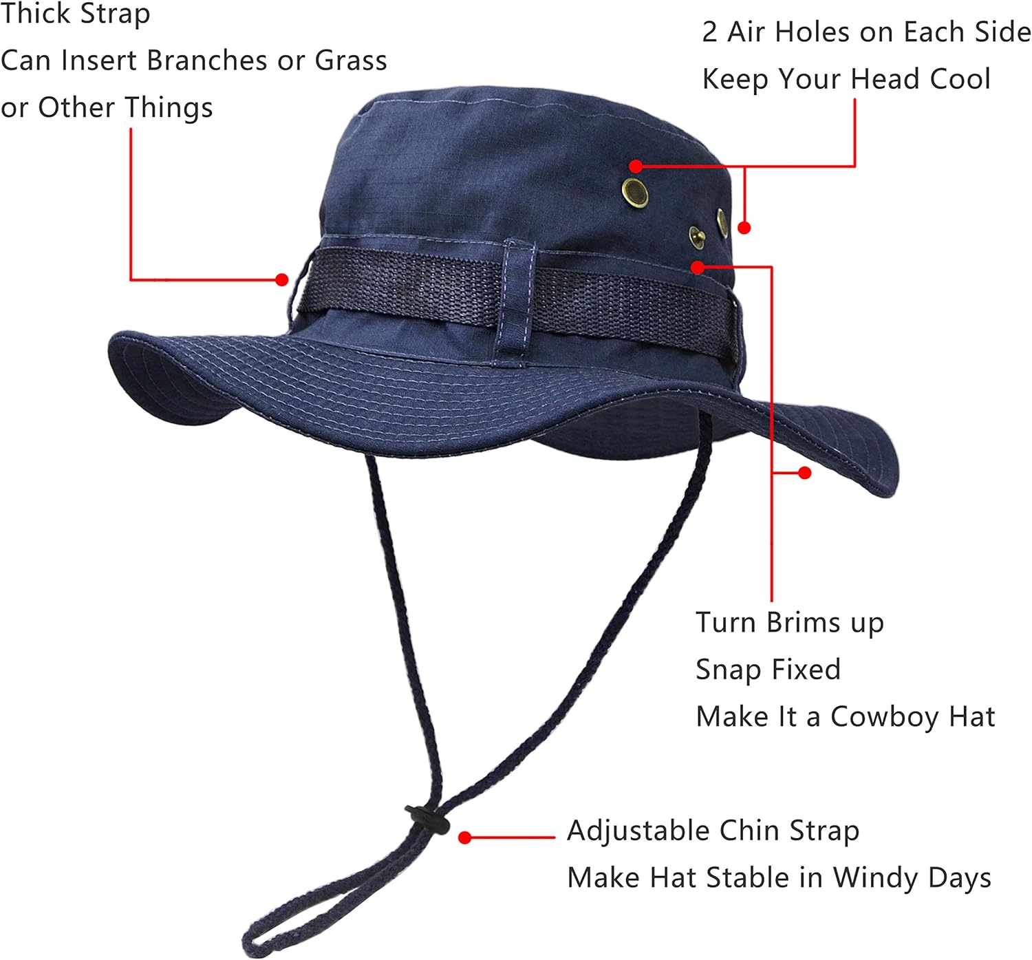 Outdoor Wide Brim Sun Protect Hat, Double Layer Classic US Combat Army Style Bush Jungle Sun Cap for Fishing Hunting Camping