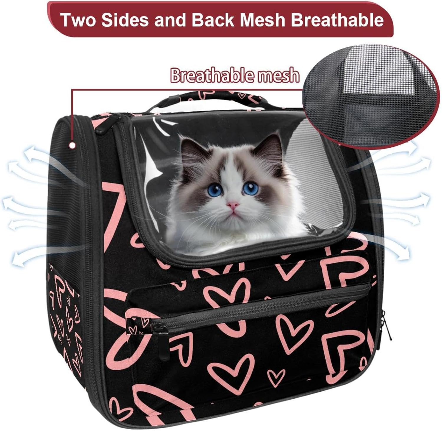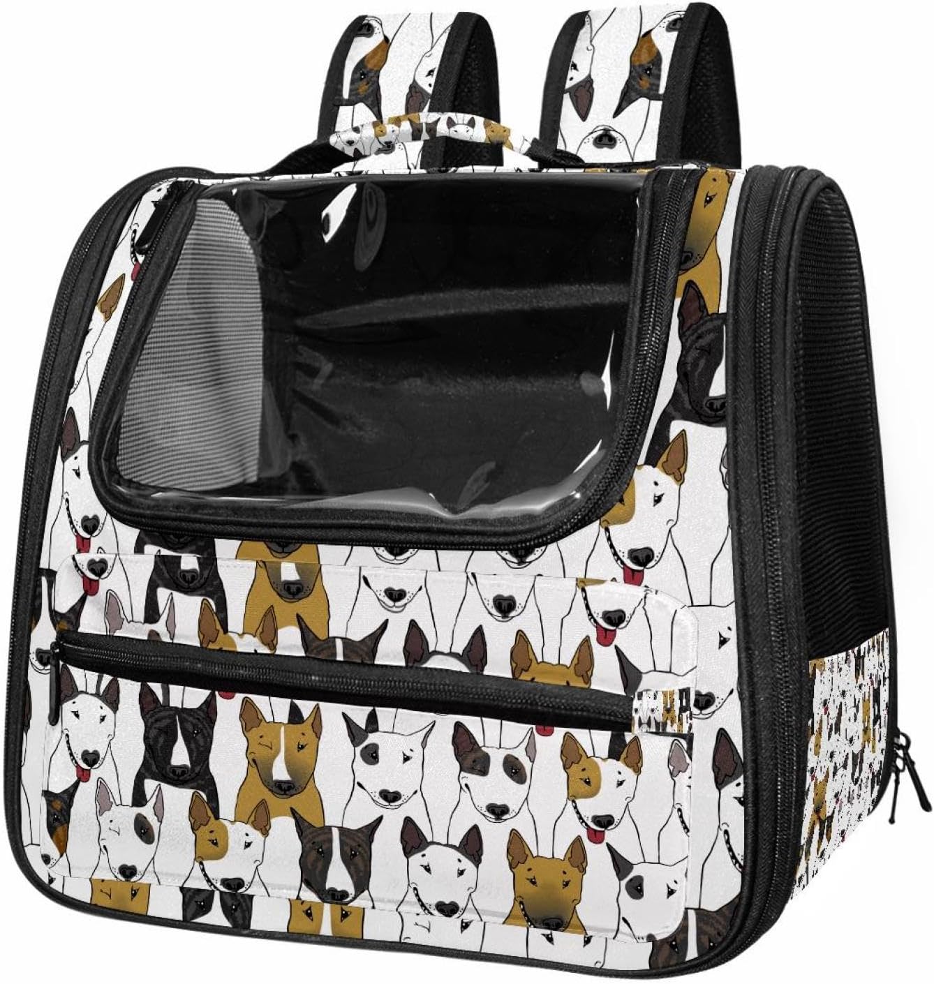 Well made: Cat Backpack Carrier is made from 900D oxford fabric, pp webbing, velvet, nylon, which is very sturdy, environmentally friendly and breathable. Not easily scratched by pet’s claws, pet backpack carrier is SAFETY & ANTI-SCRATCH. The back padding will give you a comfortable and breathable experience. Ventilated Backpack: With a breathable window in the front, this pet backpack allows cats to enjoy the sun without feeling stuffy. There are two side pockets and one big front pocket, and you can take foods or toy for your kitten pet. It is big enough for cat to turn around, and there are side pockets and hook holes, you will enjoy the greatest convenience when taking your cat out. Perfect size: Cat carrier is 15.75x9.84x13.78in/40x25x35cm. Fits most small/medium sized cat, dog, and pet. Quality fleece bed provide a comfortable place for your pet. Lightweight and easy to carry to all places. Built-in harnesses keep your naughty friends from escaping. Removable cosy mat for easier cleaning and let your pet enjoy it inside. Easy to carry: The adjustable shoulder strap of pet carrier bag help you hands-free carrying and makes it the most safe and convenient pet carrier bag for your travel. Seat belt design provide pets with safety protection throughout the trip. Pad protection keep your pets comfortable during travel. Unique Design: Innovative inside graphic design gives you a stereoscopic 3D visual experience. You also send us the photos you interest to make your unique dog or cat carrier. Pet bag is also a amazing gift for pet lover.